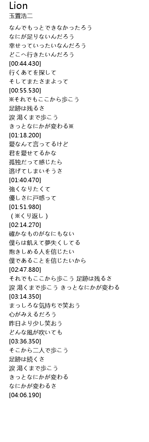 | [03:03.400] | 涙 渇くまで歩こう きっとなにかが変わる |