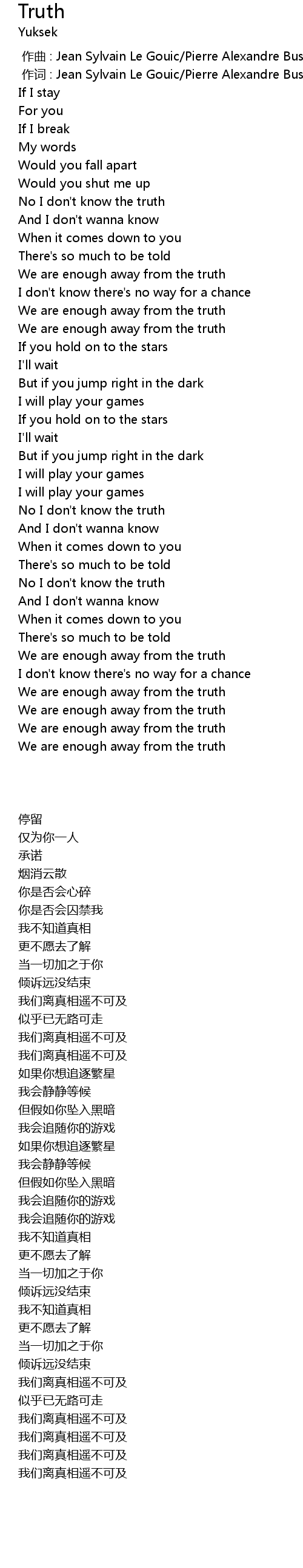 | [00:53.22] | No I don' t know the truth |