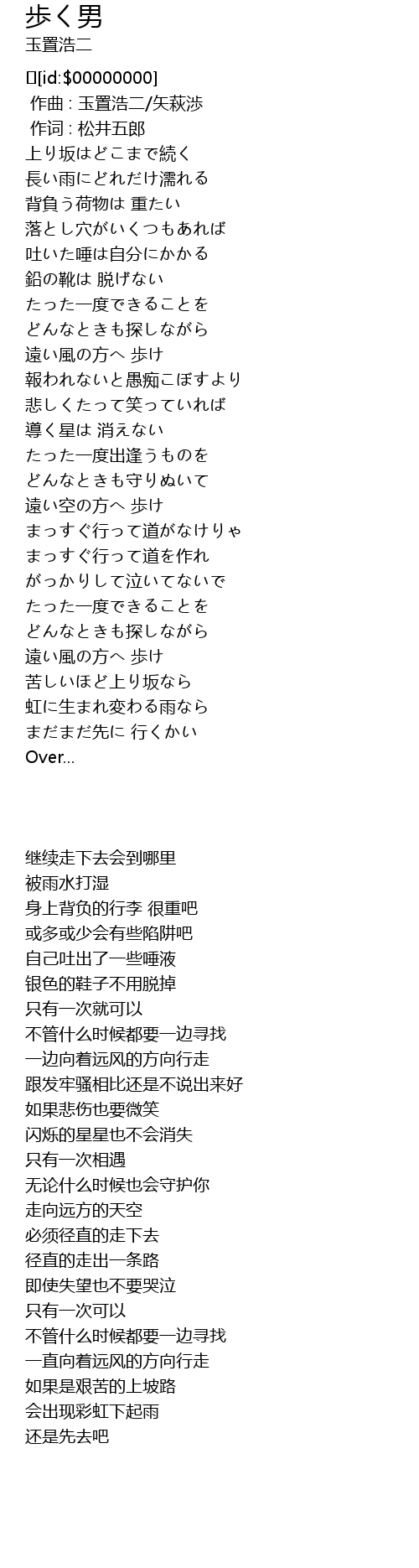 | [00:00.00] | 作曲 : 玉置浩二/矢萩渉 |