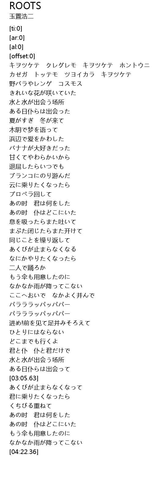 | [03:02.57] | ある日仆らは出会って |