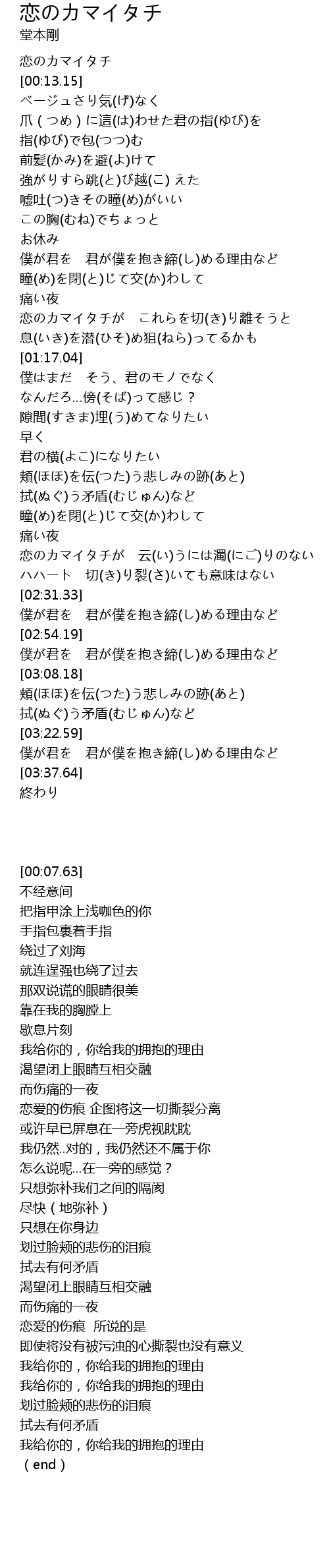 | [02:19.05] | 恋のカマイタチが 云(い)うには濁(にご)りのない |