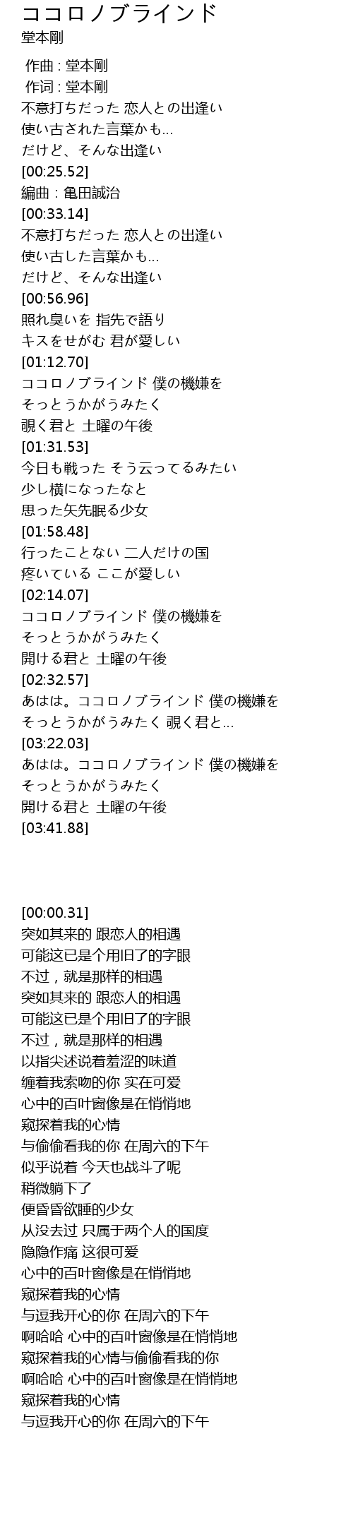 | [03:22.72] | あはは。ココロノブラインド 僕の機嫌を |