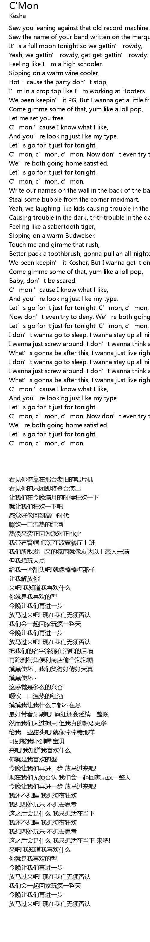 | [03:22.200] | C' mon, c' mon, c' mon. |