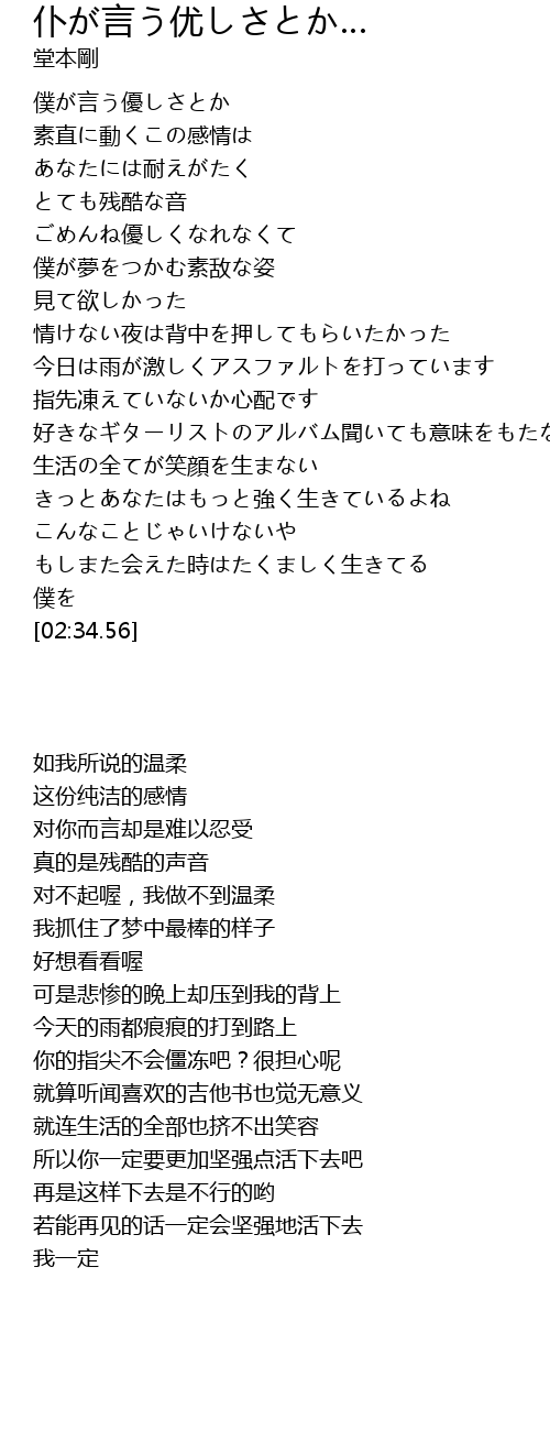 | [00:17.96] | 僕が言う優しさとか |