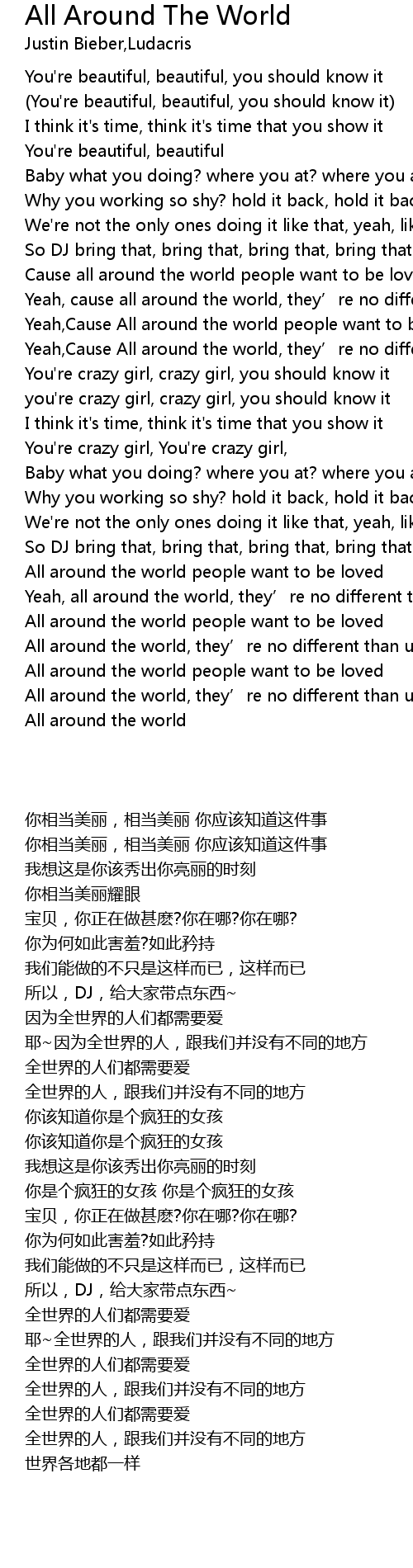 | [00:53.620] | Yeah,Cause All around the world people want to be loved |