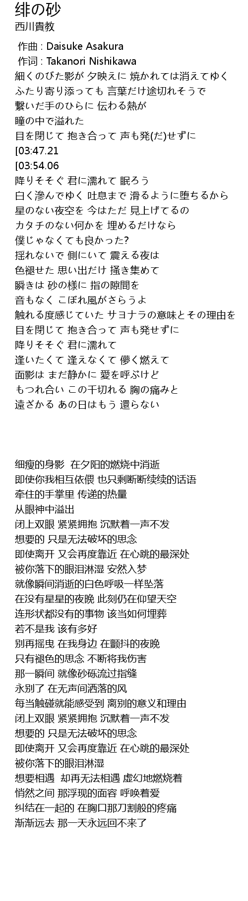| [02:51.47] | 瞬きは 砂の様に 指の隙間を |