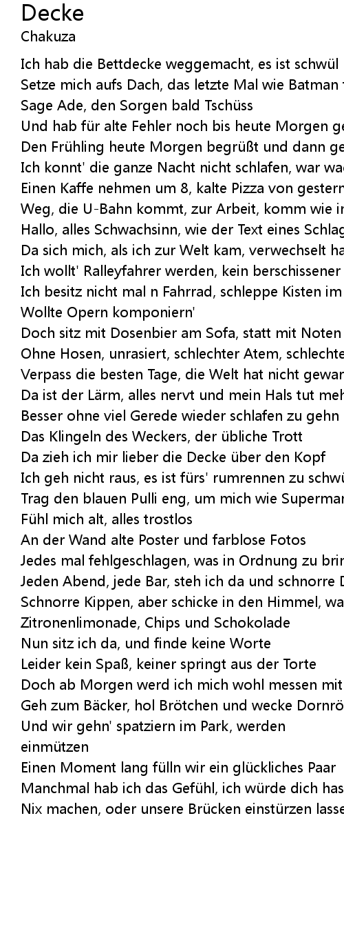 | Besser ohne viel Gerede wieder schlafen zu gehn | |