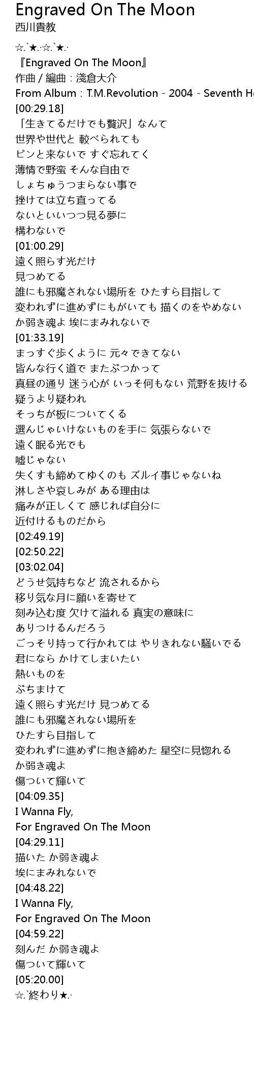 | [04:24.43] | For Engraved On The Moon |