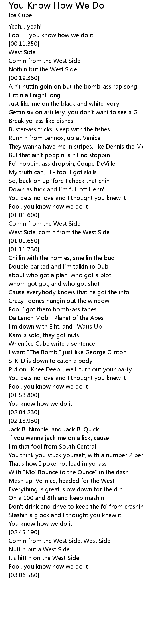 | [01:38.180] | When Ice Cube write a sentence |