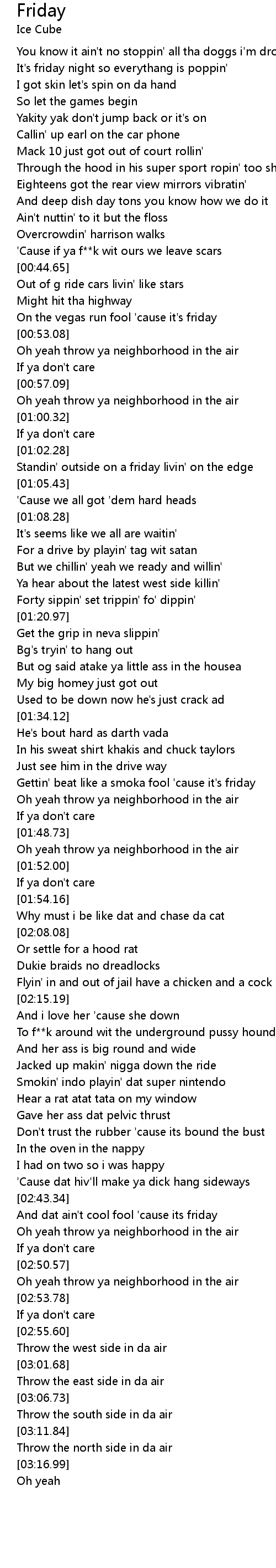 | [02:44.29] | And dat ain't cool fool 'cause its friday |