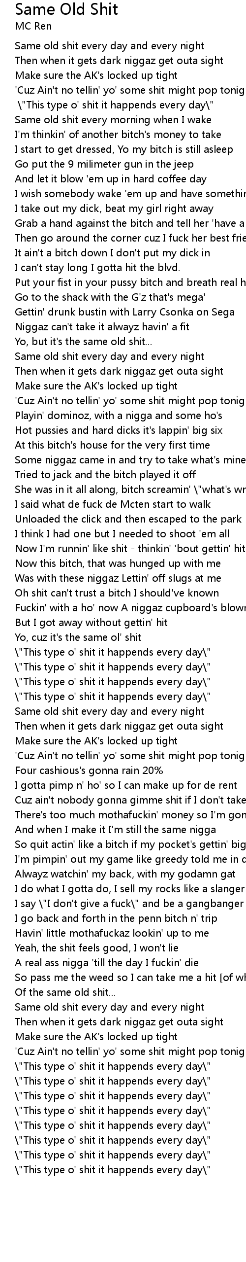 | Yo, cuz it's the same ol' shit | |