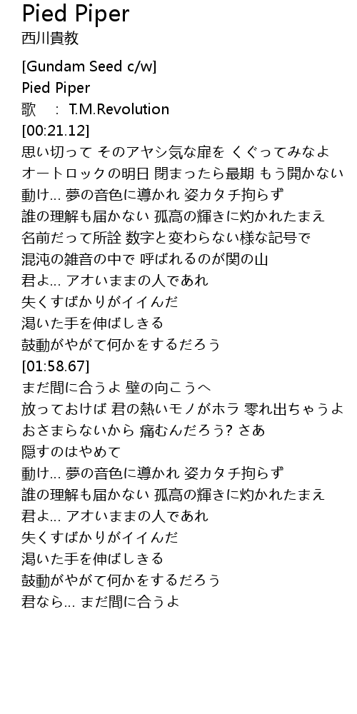 | [01:37.76] | 君よ… アオいままの人であれ 失くすばかりがイイんだ |