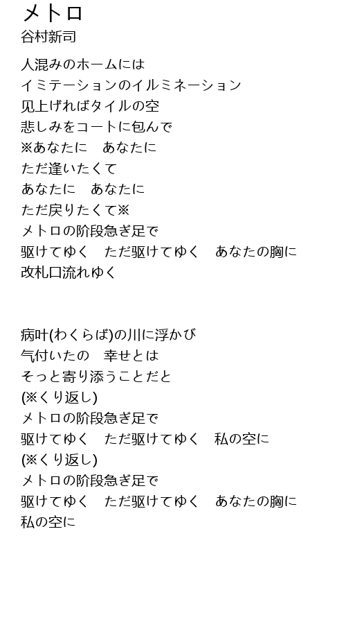 驱けてゆく ただ驱けてゆく あなたの胸に |