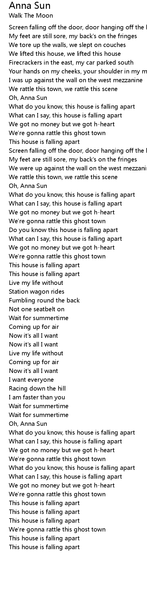 What do you know, this house is falling apart |