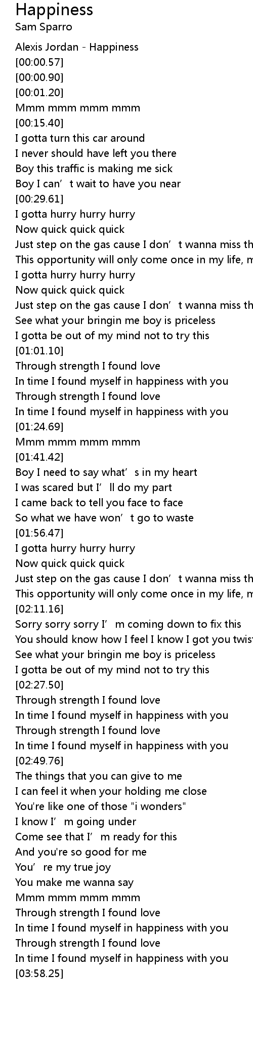 | [00:00.25] | Alexis Jordan Happiness |
