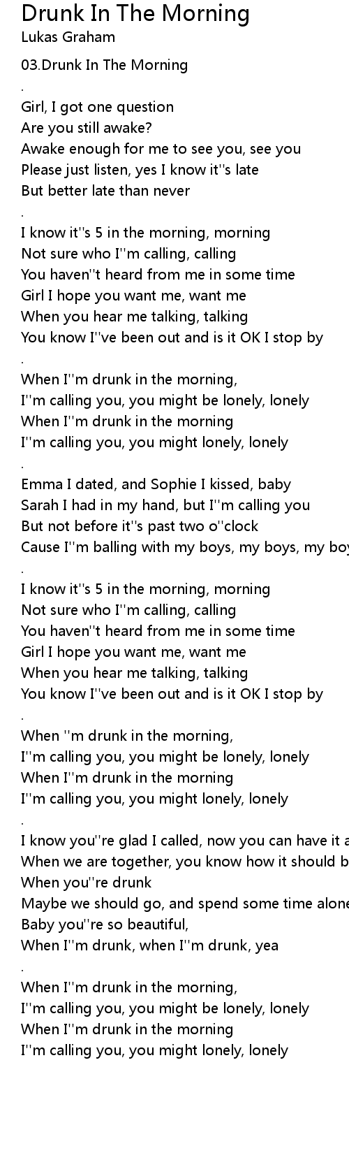 When ''m drunk in the morning, |