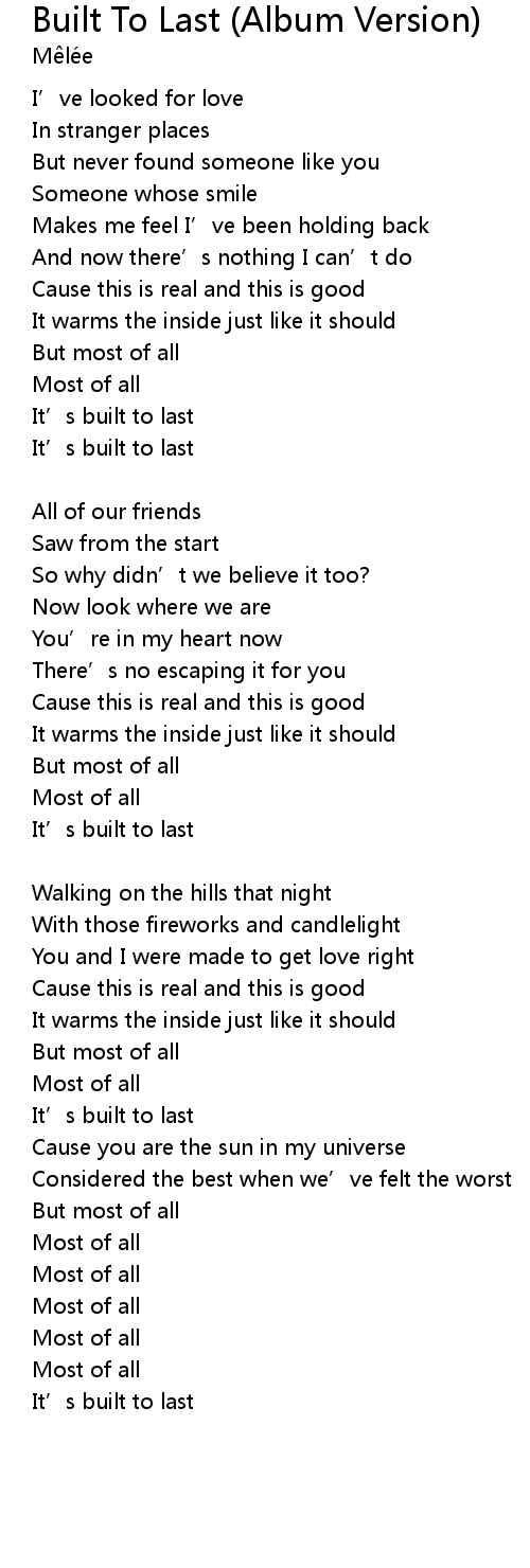 | 歌曲 | Built To Last (Album Version) |