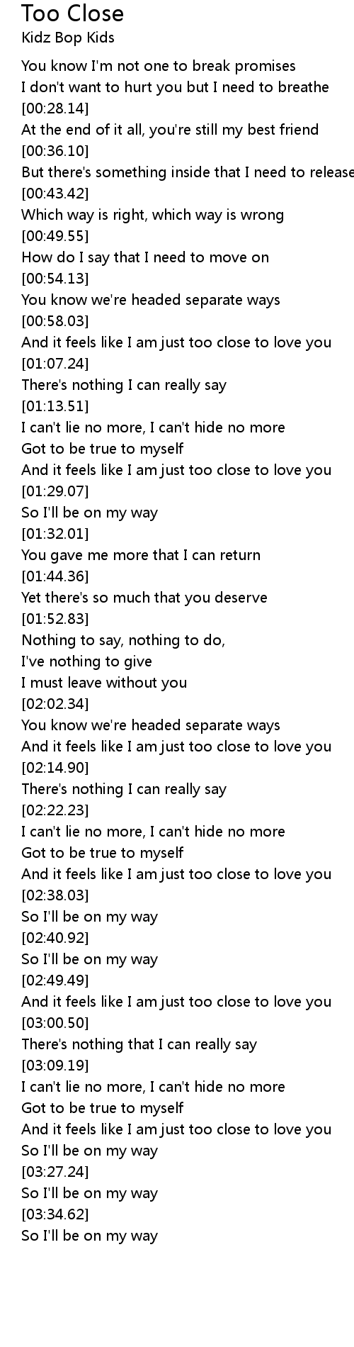 And it feels like I am just too close to love you |