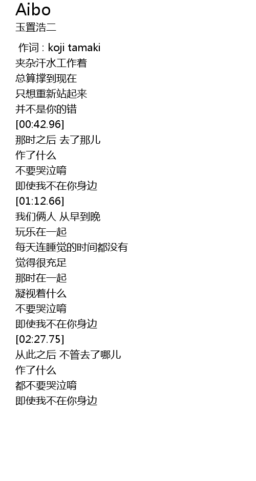 | [00:43.58] | nà shí zhī hòu qù le nà ér |