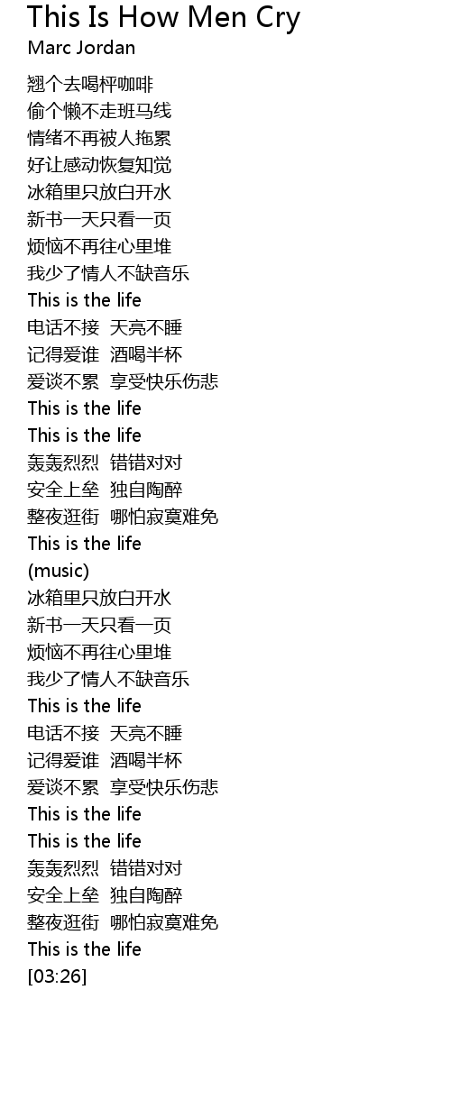 | 歌曲 | This Is How Men Cry |