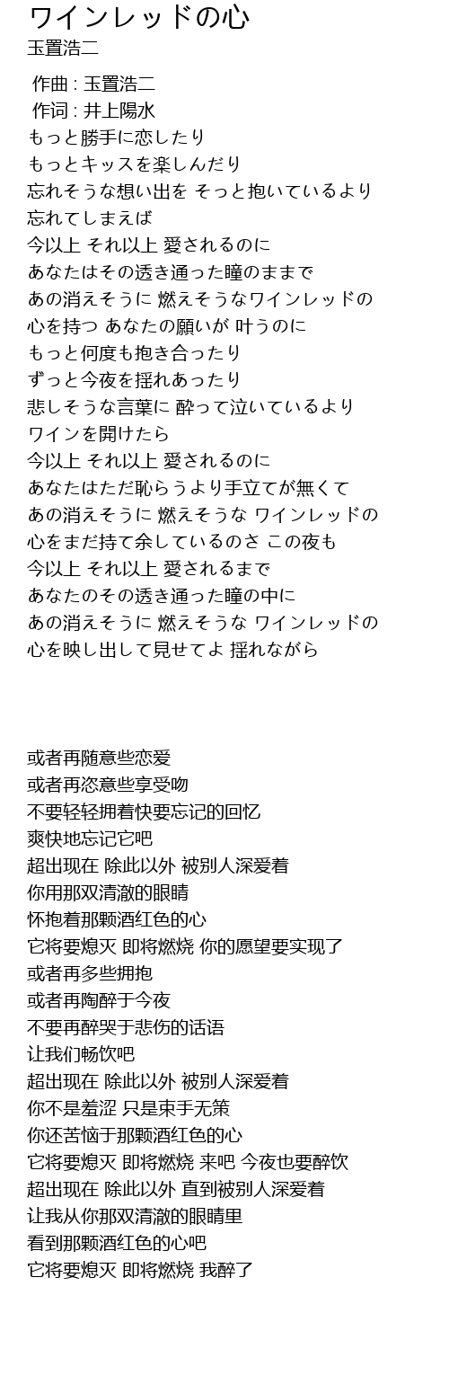 | [02:41.900] | あの消えそうに 燃えそうな ワインレッドの |