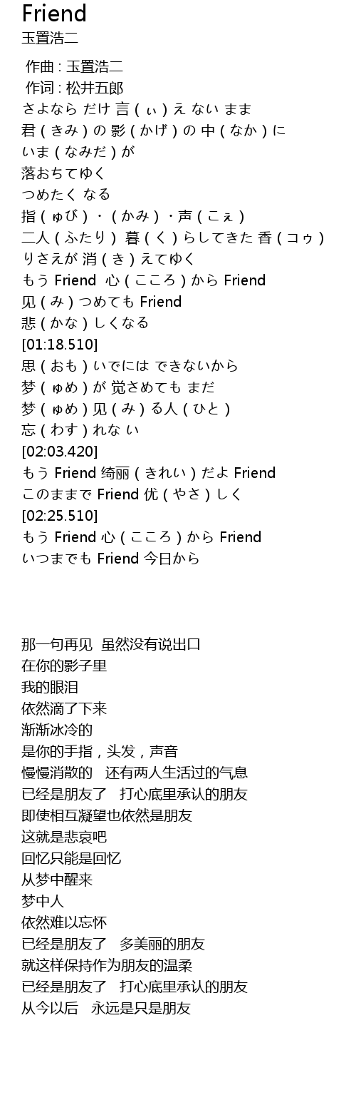 | [02:25.810] | もう Friend 心(こころ)から Friend |