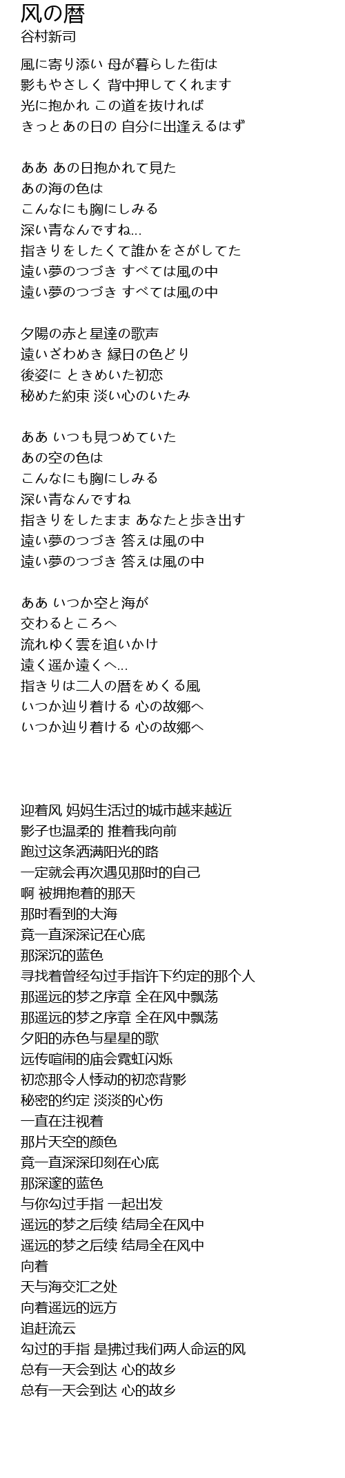 | [04:55.500] | 总有一天会到达 心的故乡 |
