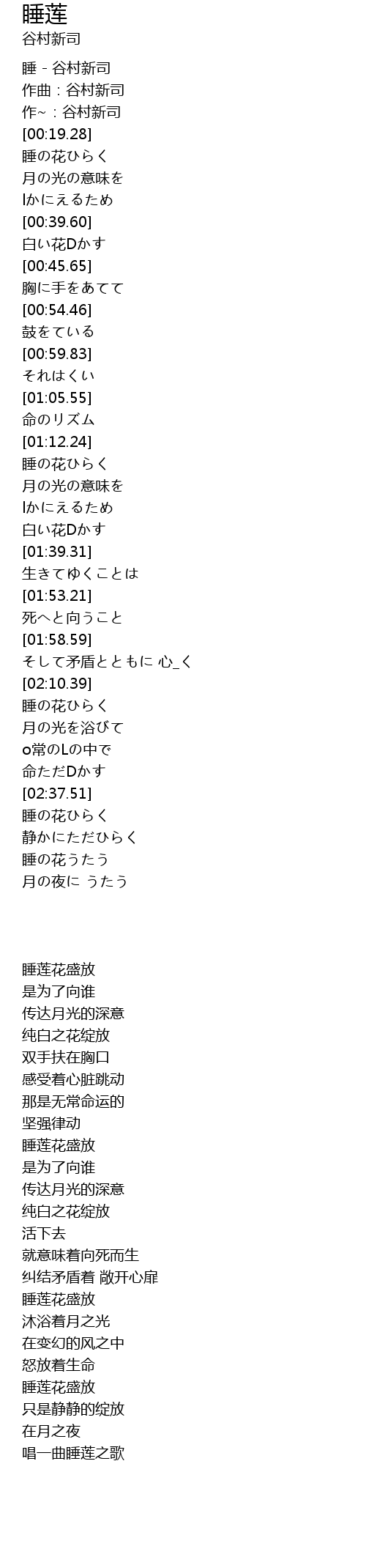 睡 - 谷村新司 |