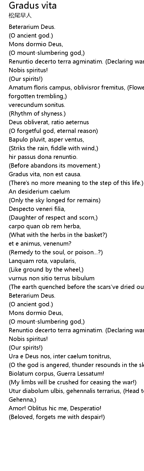 Amatum floris campus, oblivisror fremitus, (Flower of love on the wild, forgotten trembling,) |