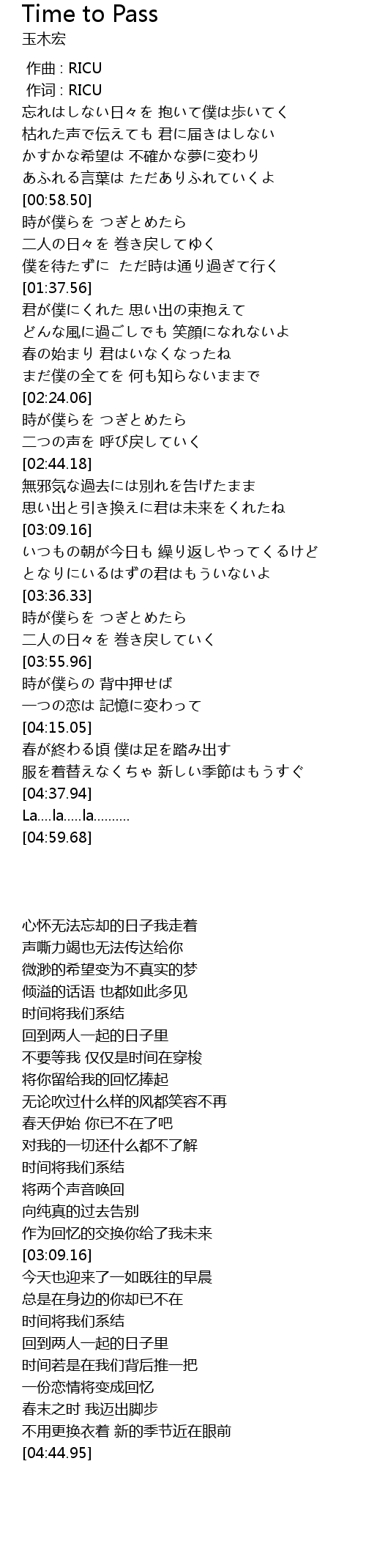 | [04:44.95] | La.... la..... la.......... |