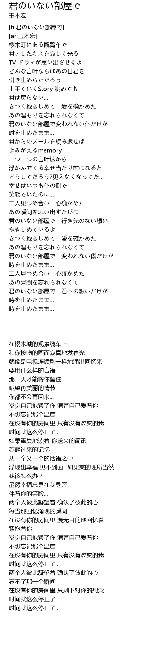 | [04:13.675] | 君のいない部屋で 君への想いだけが |