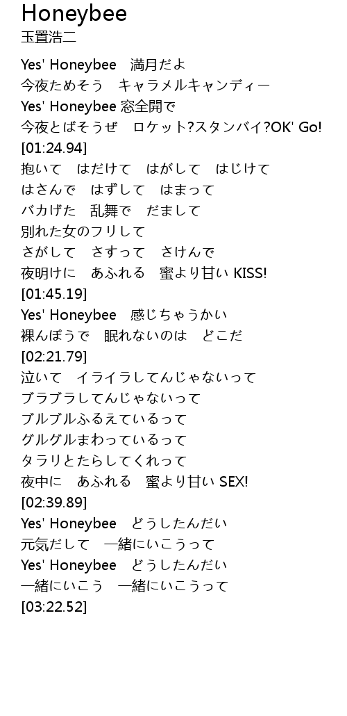 | [02:01.62] | Yes' Honeybee 感じちゃうかい |