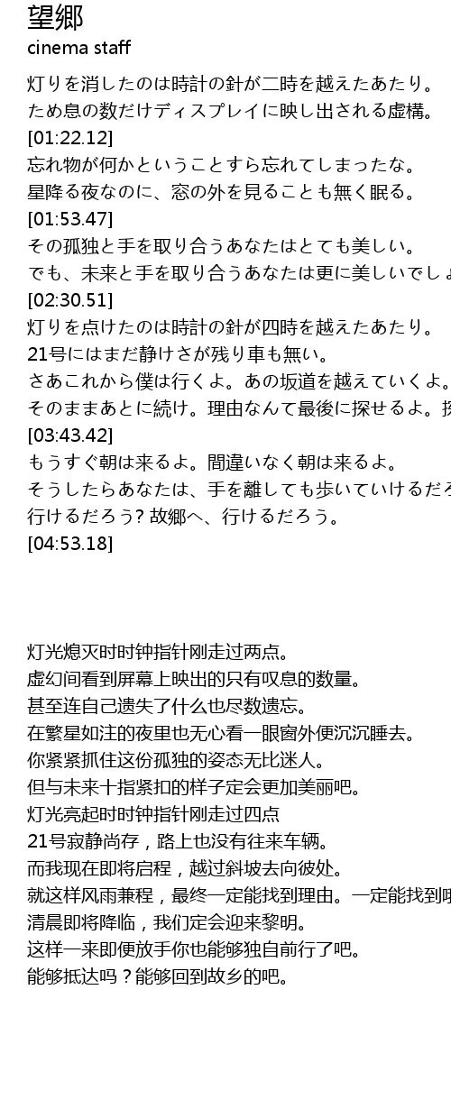 | [04:34.01] | 能够抵达吗?能够回到故乡的吧。 |