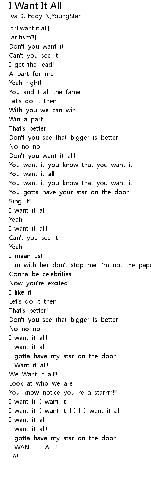| [03:31.646] | I want it I want it I-I-I I want it all |