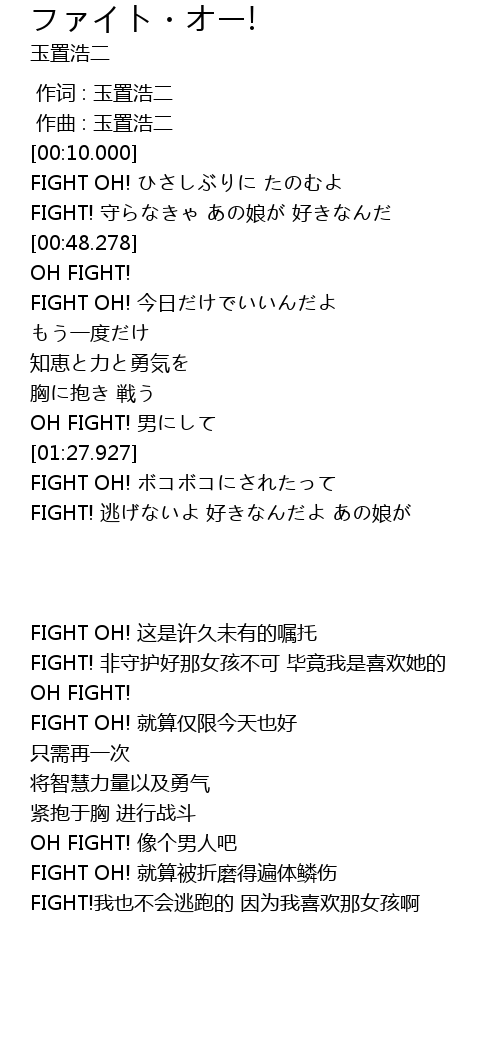 | [01:41.386] | FIGHT OH! 就算被折磨得遍体鳞伤 |