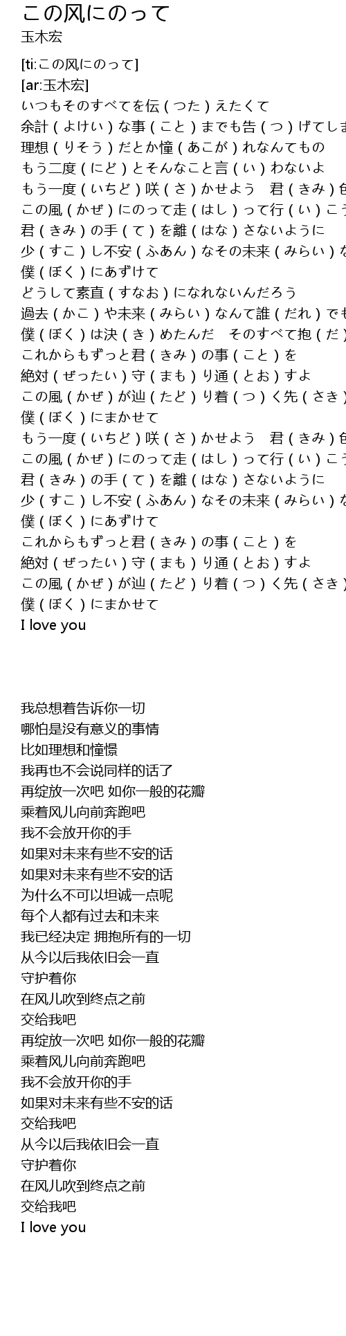 | [00:53.504] | この風(かぜ)にのって走(はし)って行(い)こう |