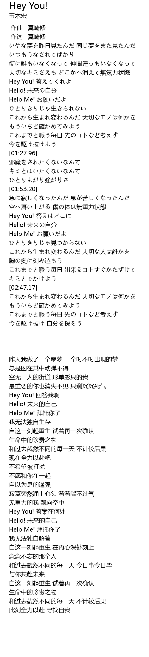 | [00:43.23] | 大切なキミさえも どこかへ消えて無気力状態 |