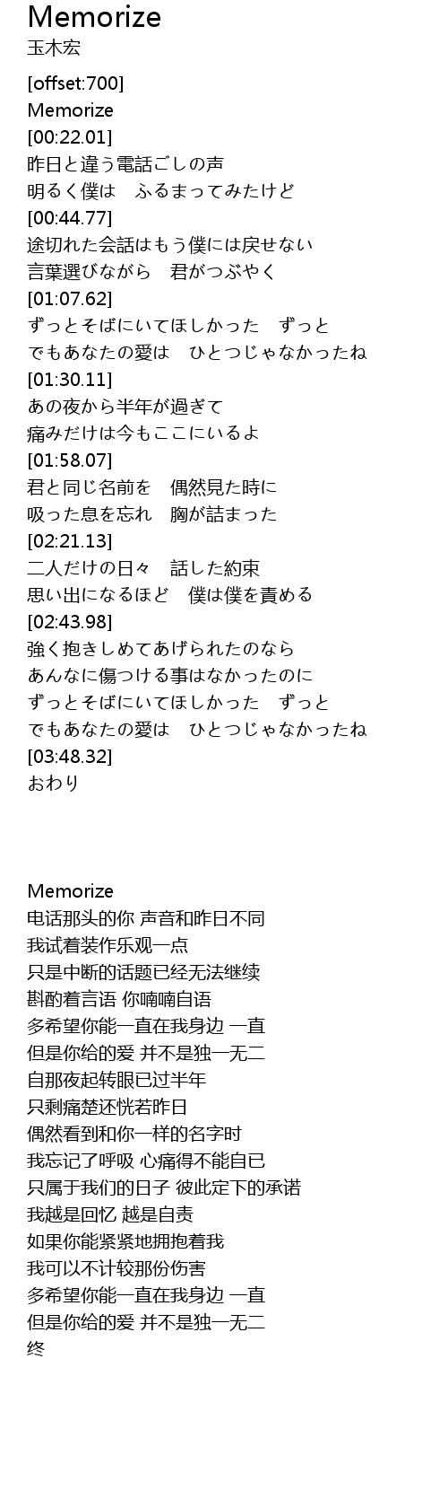| [00:01.01] | Memorize |