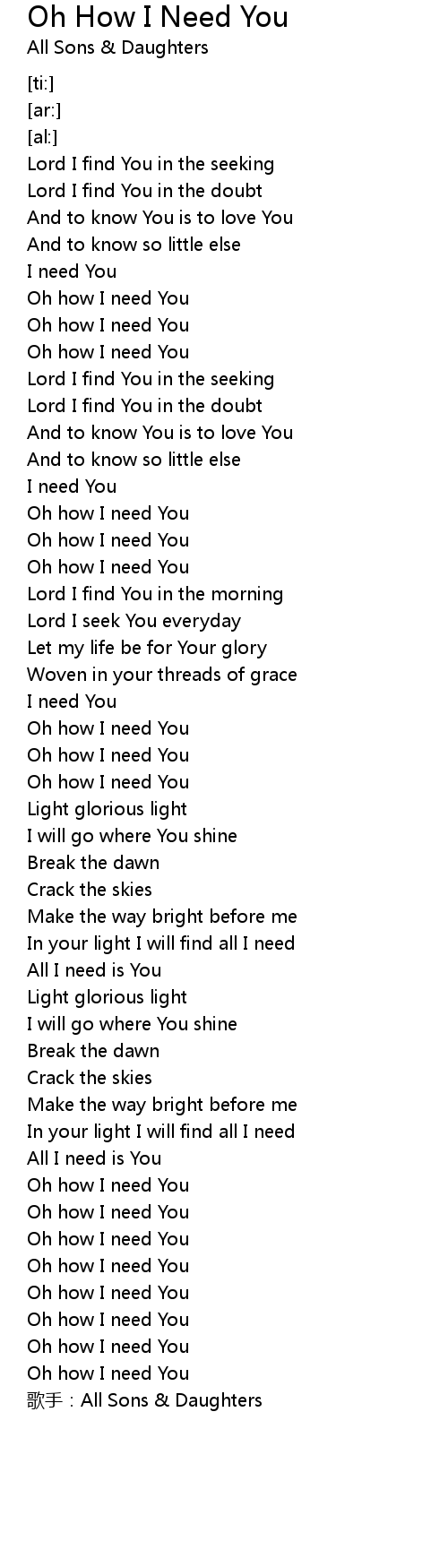 | [03:53.25] | 歌手:All Sons & Daughters |