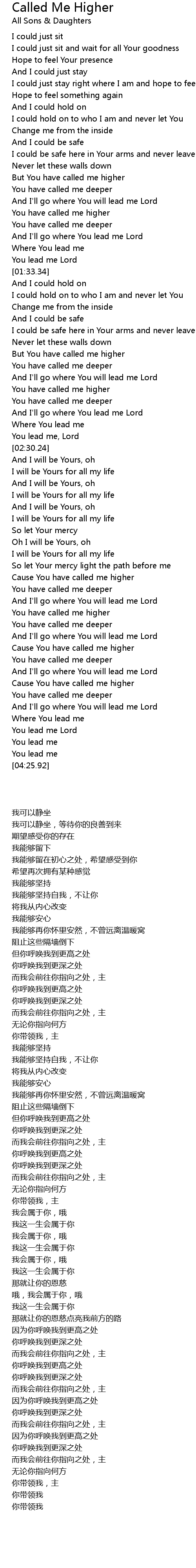 Cause You have called me higher |
