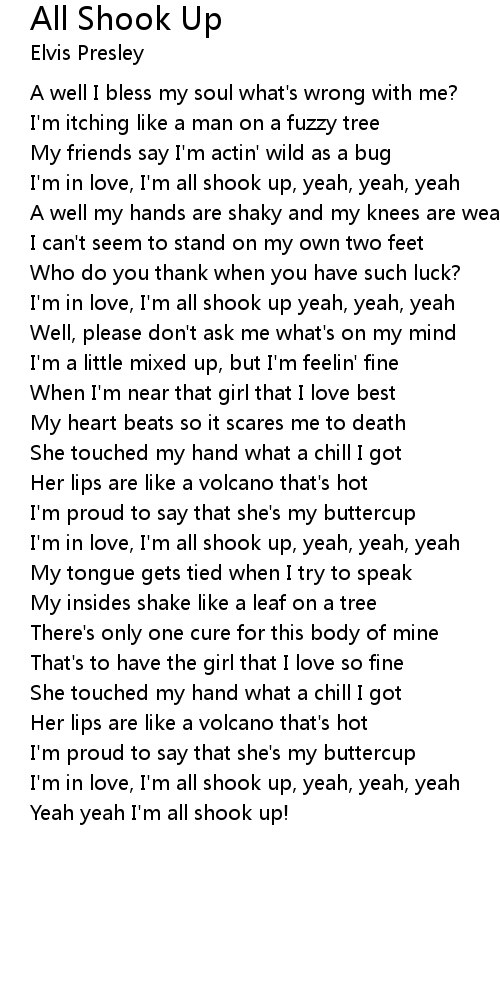 I'm in love, I'm all shook up, yeah, yeah, yeah