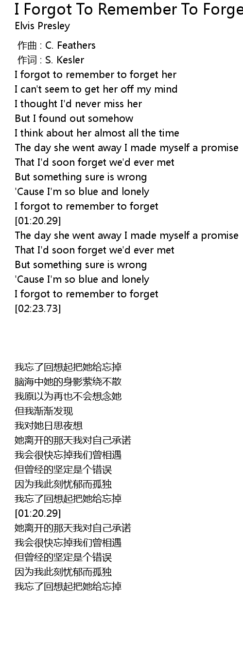| [02:17.04] | I forgot to remember to forget |