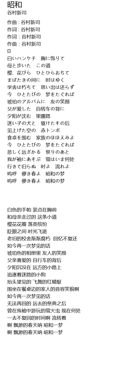 | [03:48.71] | 啊 飘渺的春天呐 昭和一梦 |