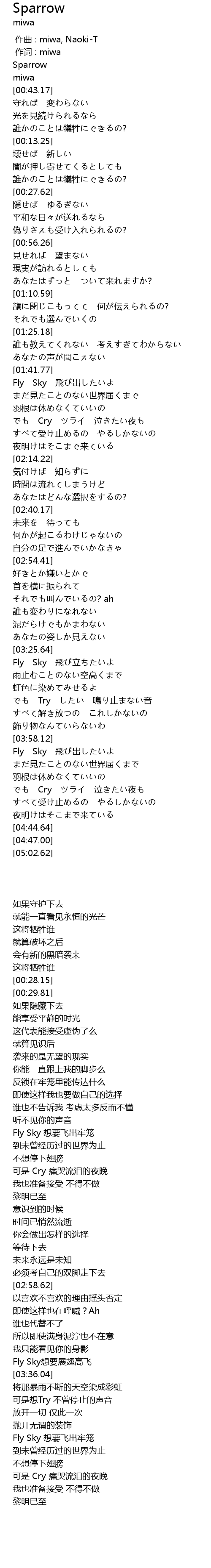 作词 : miwa |
