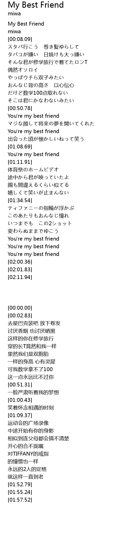 | [00:35.83] | おんなじ背の高さ 以心伝心 |