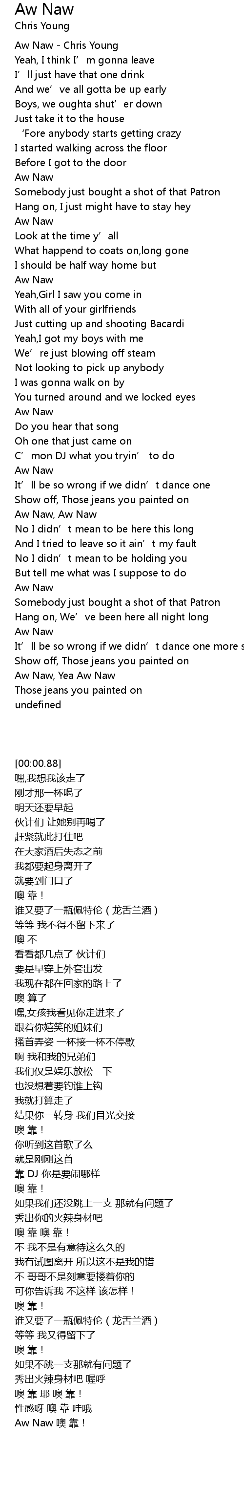 | [00:00.88] | Aw Naw Chris Young |