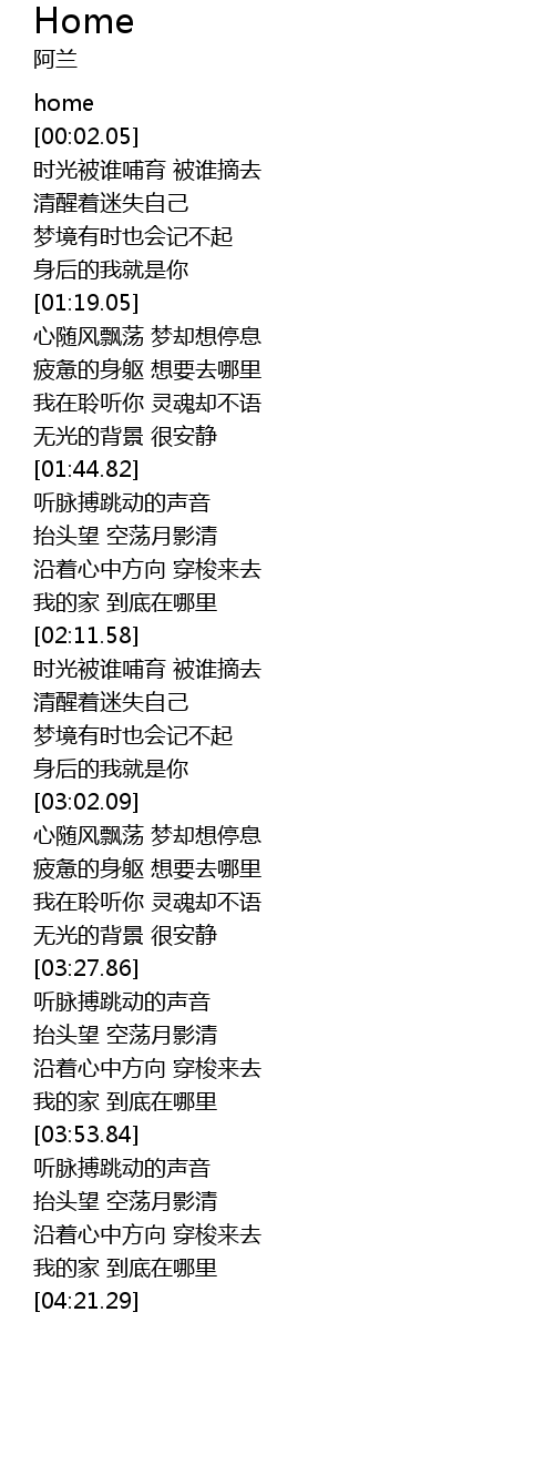 | [02:04.56] | wǒ de jiā dào dǐ zài nǎ lǐ |