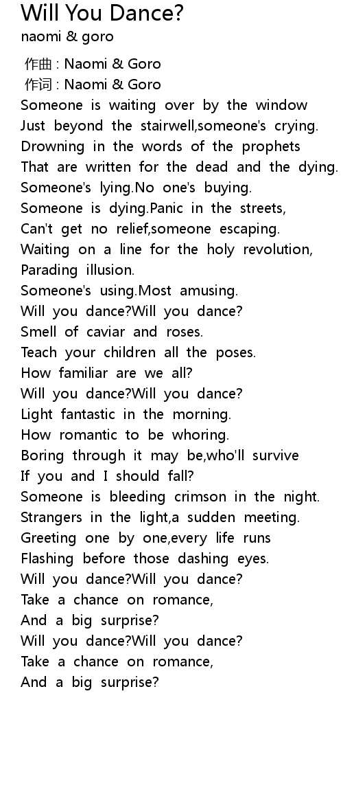 | [02:26.500] | Will you dance? Will you dance? |