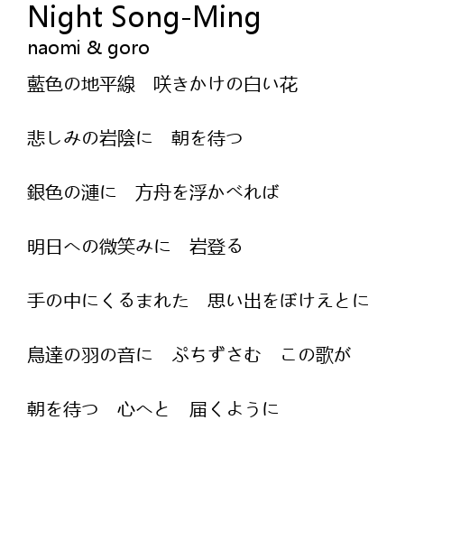 | 鳥達の羽の音に ぷちずさむ この歌が | |
