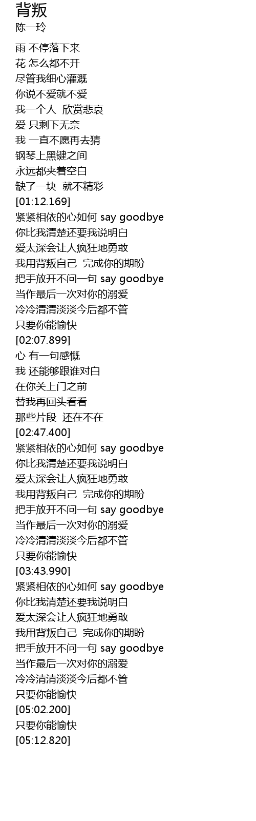 | [01:41.189] | 把手放开不问一句 say goodbye |